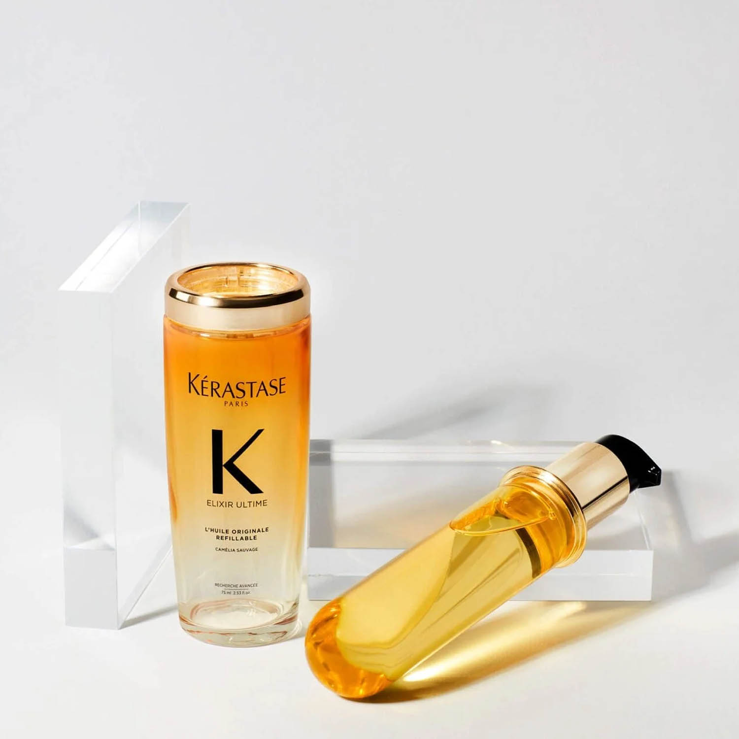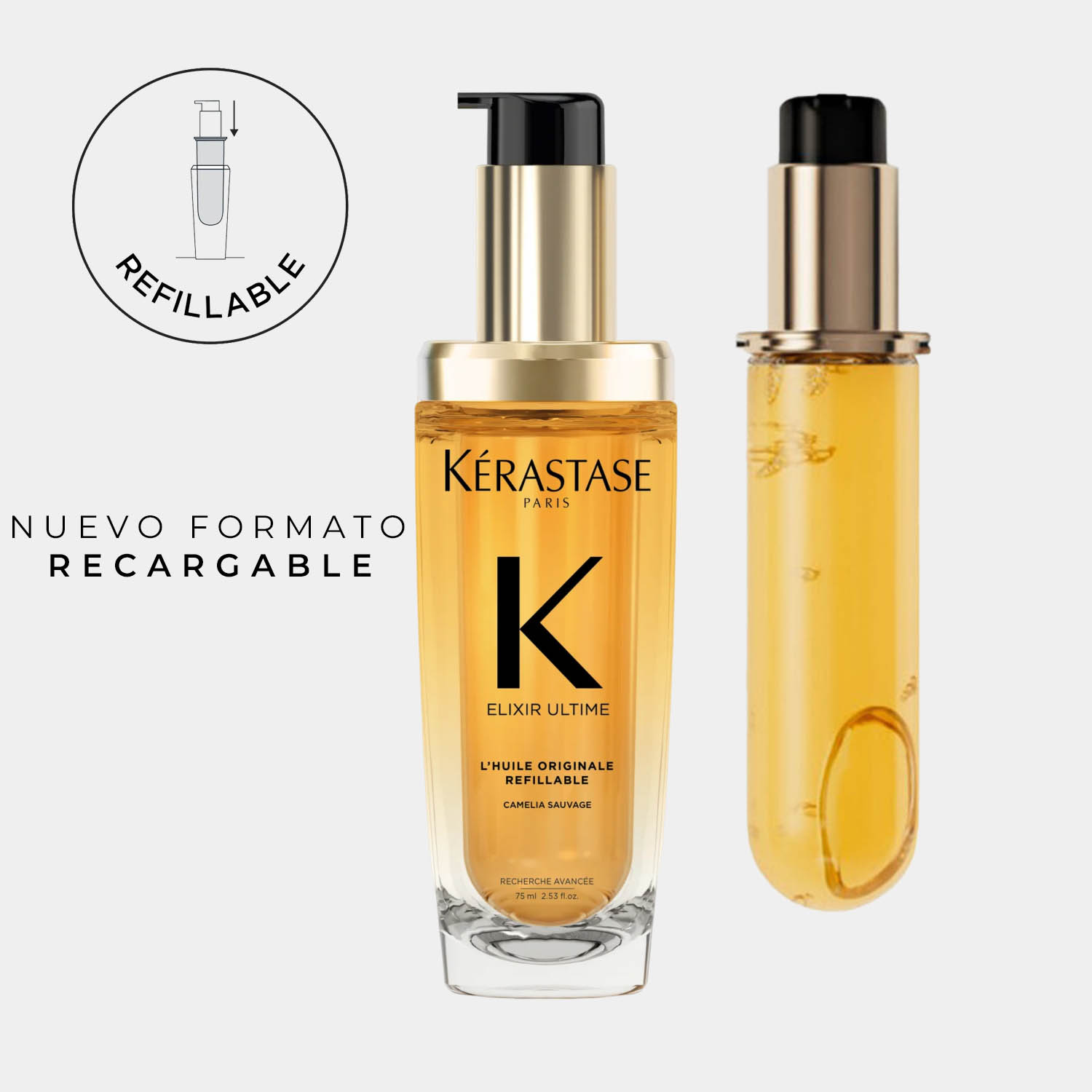 Nuestro icónico aceite capilar, ahora es recargable. Huile Originale Elixir Ultime de Kérastase es un aceite sublimador versátil y sin aclarado. Su nueva fórmula contiene camelia francesa y camelia silvestre seleccionadas a mano. Se presenta en un formato recargable y sostenible, que garantiza un rendimiento avanzado en todo tipo de cabello. Con su textura ligera, protege el cabello, dejándolo más suave, sedoso y brillante.
