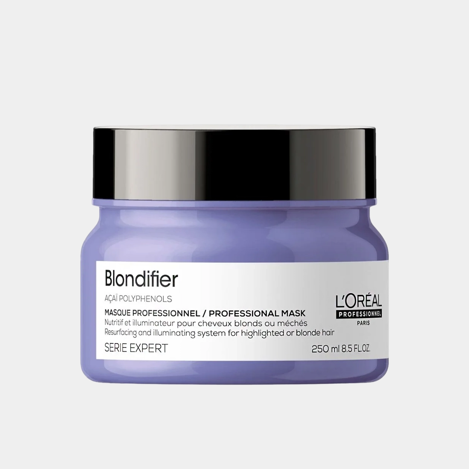 Mascarilla enriquecida con extracto de Açaí que contiene polifenoles antioxidantes que reponen suavizan y nutren la fibra capilar mejorando el brillo natural y el resplandor del cabello rubio. El cabello se vuelve instantáneamente más brillante suave y fácil de desenredar de raíz a puntas.